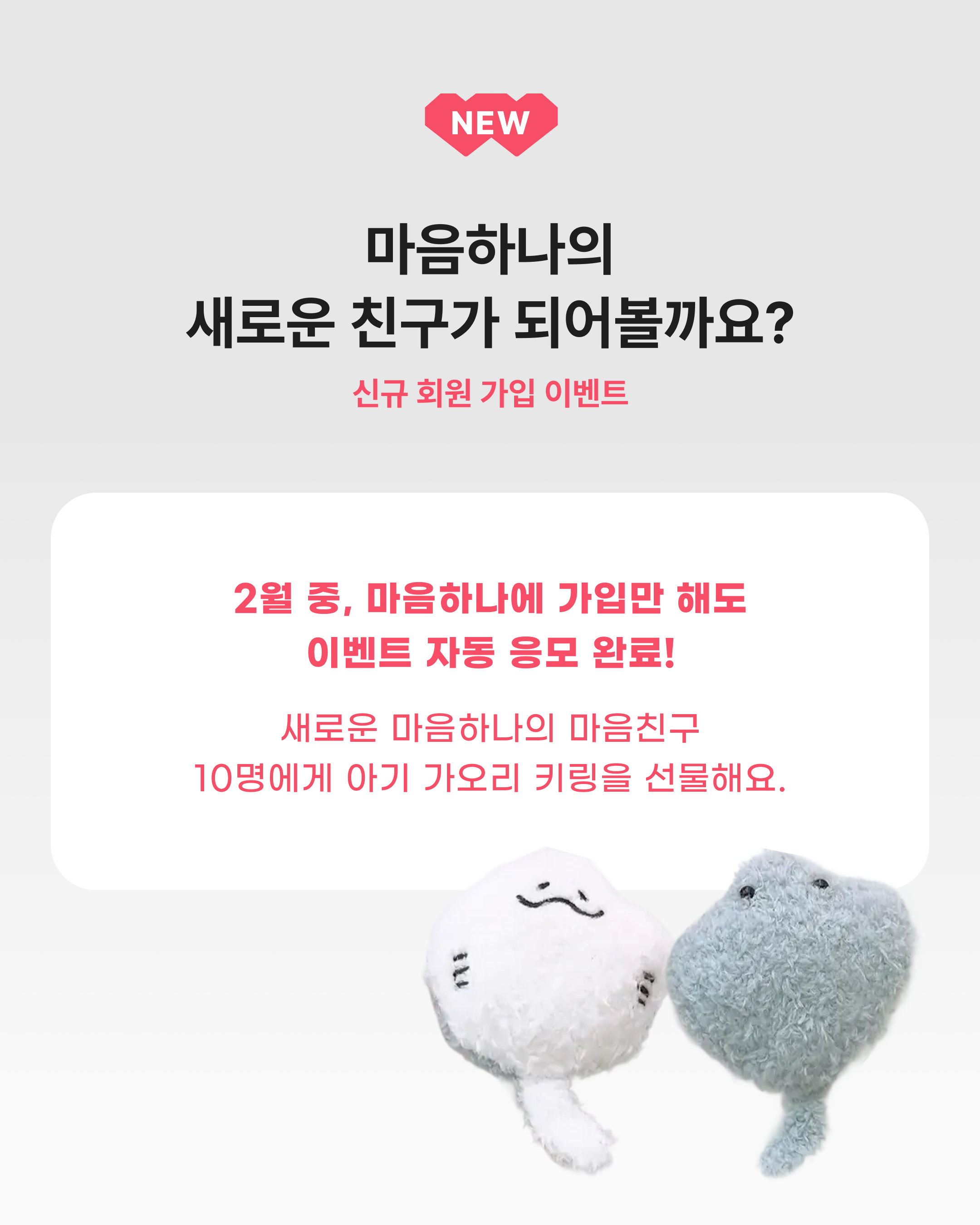 참여 방법 : 마음하나 회원 가입 시 자동 참여 (추첨)