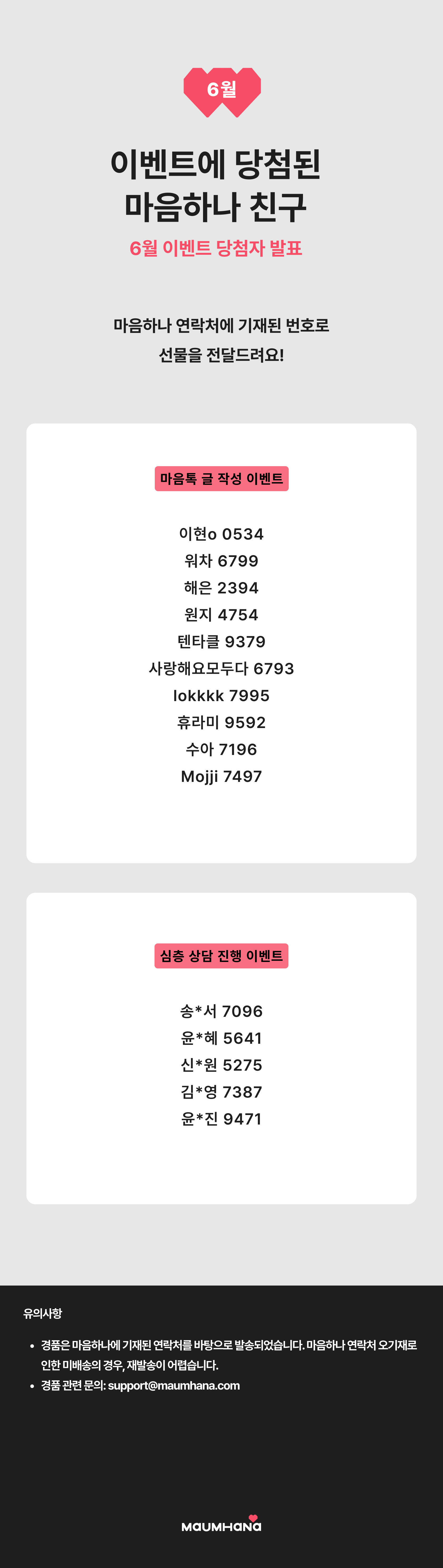 이벤트에 당첨된 마음하나 친구들 💖